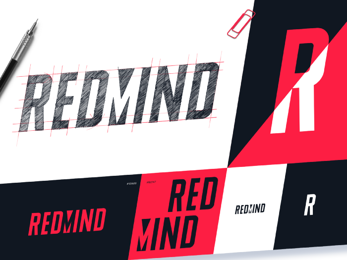 Дизайн логотипа для Redmind — студии дизайна и технологий со штаб-квартирой в Стокгольме. Здесь вы можете заметить прочный и смелый словесный знак, визуальная оригинальность которого основана на использовании негативного пространства и цветового контраста.