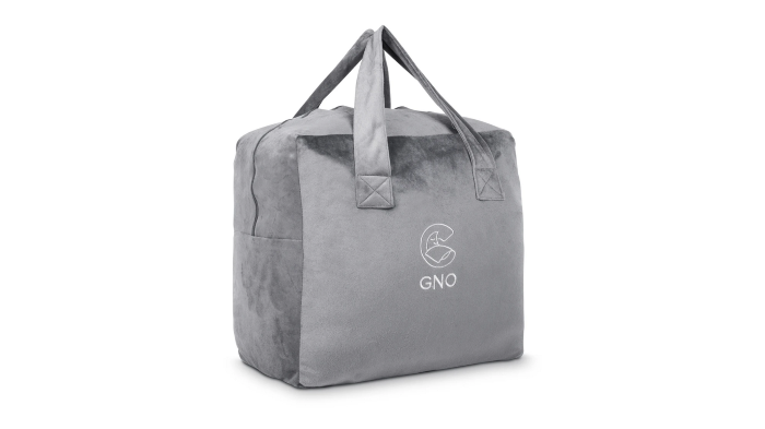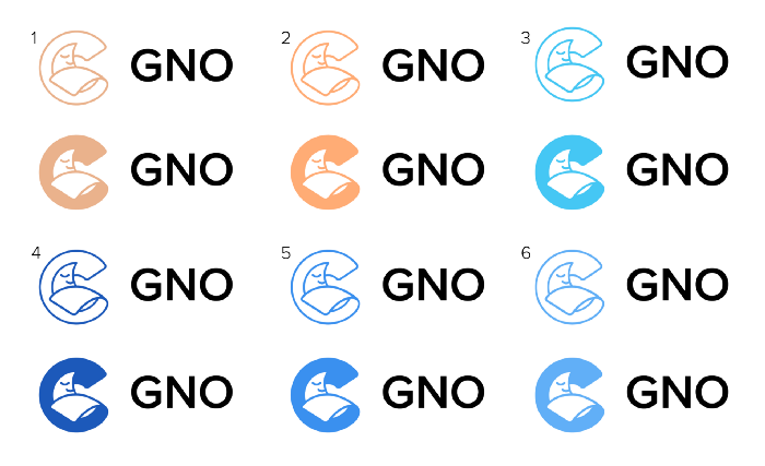 Логотип для бренда GNO Wellbeing, который производит и продает плотные одеяла. В результате творческого поиска и итераций команда разработала окончательный логотип: бежевый контурный символ спящей луны с простым оформлением.