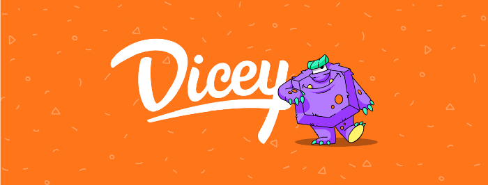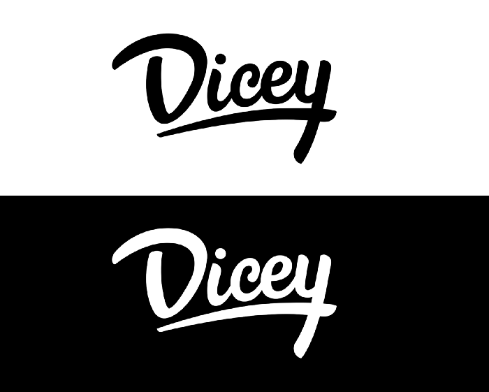 Ниже представлен пример дизайна бренда для веселой игры на вечеринке под названием Dicey. В творческом процессе этого проекта не было отдельных частей для логотипа и персонажа-талисмана. В данном словесном знаке используются плавные линии. Таким образом, он совмещает стиль, элегантность и некую игривость.