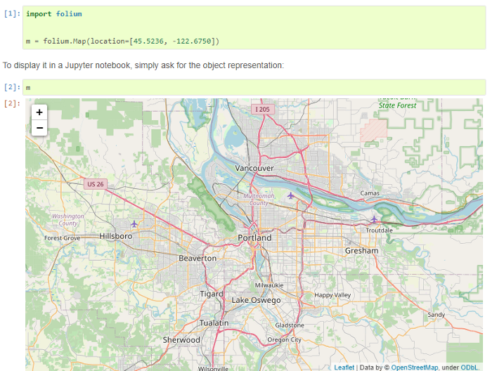 Folium позволяет легко визуализировать на интерактивной карте Leaflet предварительно обработанные на Python-сервере данные. Пакет содержит ряд встроенных наборов тайлов от провайдеров OpenStreetMap, Mapbox и Stamen, а также поддерживает пользовательские наборы тайлов с ключами API Mapbox или Cloudmade.