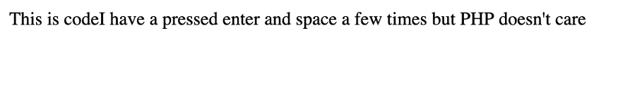 Echo "I have a pressed enter and space a few times but PHP doesn’t care";