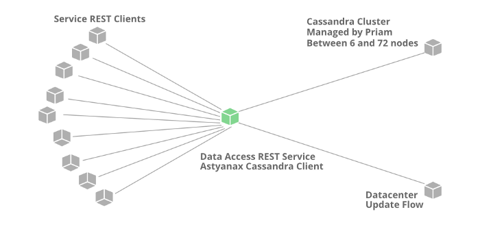 Cassandra — это база данных NoSQL, которая может обрабатывать большие объемы информации, а также интенсивно выполнять запись и чтение. Когда Netflix начала приобретать больше пользователей, данные истории просмотров каждого участника также начали увеличиваться. В результате возросло общее количество данных историй просмотров, и Netflix стало сложно обрабатывать такой огромный объем данных. Netflix изменила масштаб хранилища данных историй просмотров, преследуя две основные цели: