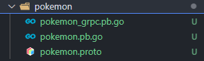 Этой командой генерируются два файла: pokemon.pb.go для сериализации сообщений с помощью буферов протокола и pokemon_grpc.pb.go, состоящий из кода для клиента gRPC и серверного кода, где они потом будут реализовываться: