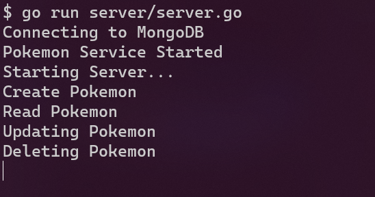Создаем сервер с подключением MongoDB. Сначала импортируем определения буферов протокола и создаем структуру с помощью PokemonServiceServer, а затем реализуем функции в файле .proto (createPokemon, ReadPokemon и т. д.):