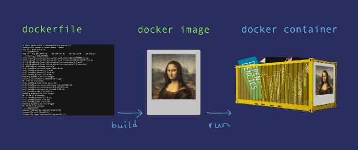 Образ берет свое начало в файле dockerfile — среде, представленной в тексте. Каждая строка этого файла представляет собой слой кеширования образа. dockerfile запускается, настраивая образ, который инстанцирует новые экземпляры контейнеров.