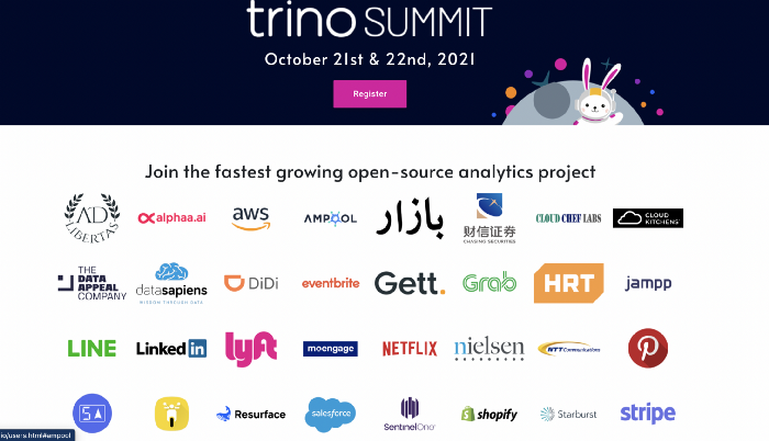 Поскольку все наши данные хранятся в корзинах, нам нужен был какой-то механизм запросов для их получения. Trino оказался простым решением, поскольку у нас уже были практические навыки по использованию этого проекта. Некоторые из нас уже внесли свой вклад в него, что было официально отмечено на сайте Trino.