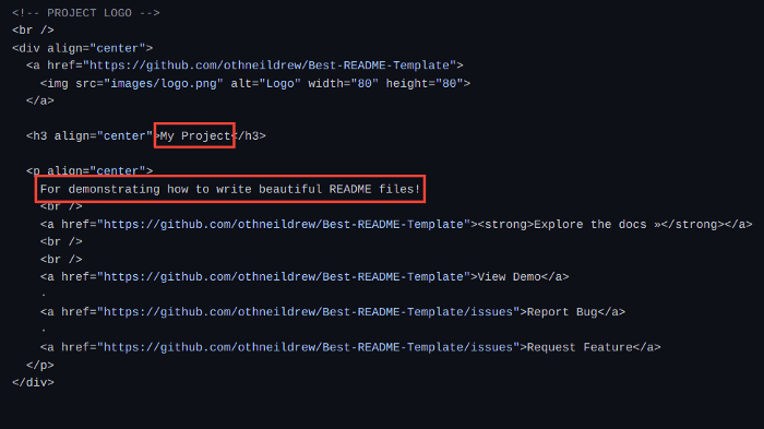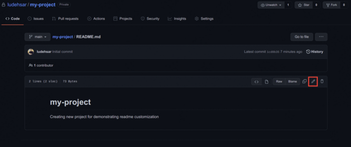 Теперь пришло время изменить файл README.md в соответствии с содержанием конкретного проекта. Начнем с изменения названия и описания.