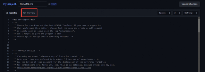 Например, шаблон Best-Readme-Template обладает многими функциональными возможностями, полезными для демонстрации проектов. Итак, создадим readme с его помощью.