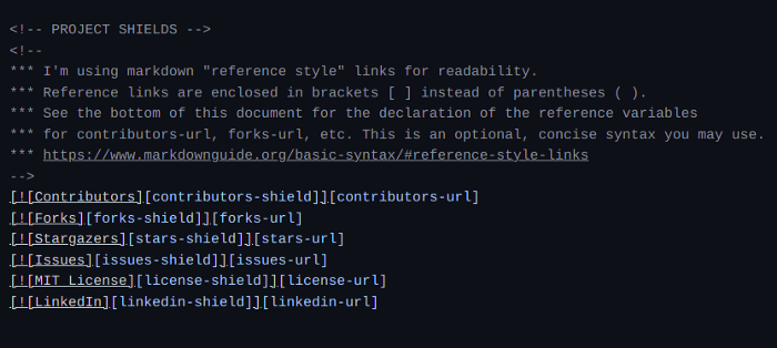 В шаблонах readme можно найти некоторые шилды, как показано ниже: