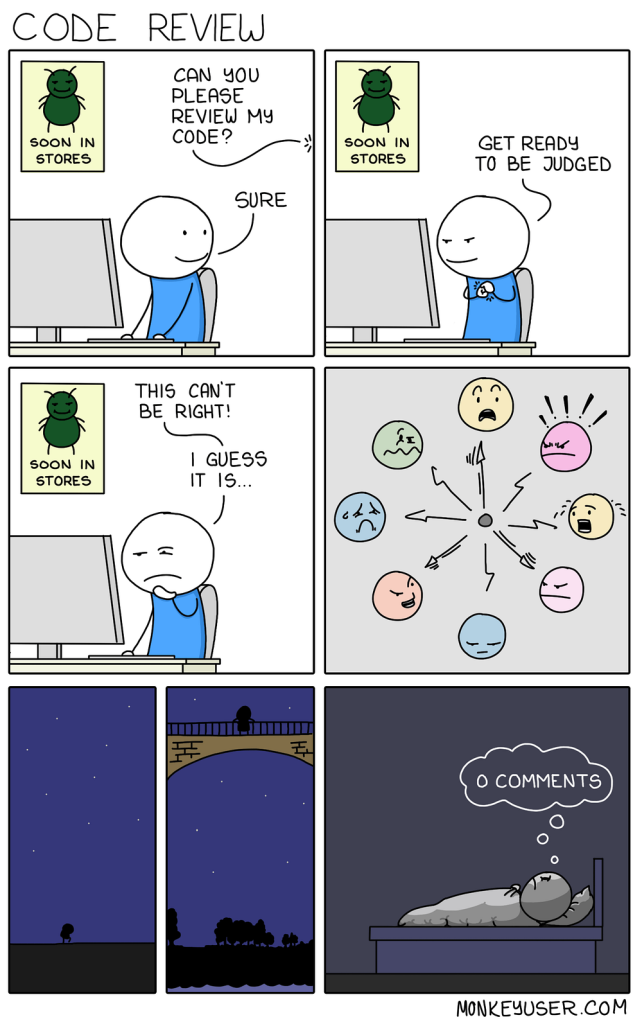 Ревью кода — процесс не из легких. Нужно быть обстоятельным в ответах, но при этом не спамить коллег сообщениями, а также уважительным, но правдивым. Более того, необходимо самому проявлять инициативу, не ограничиваясь только предоставлением обратной связи. При ревью кода важно соблюдение баланса, поскольку кто-то любит общаться, а кто-то — нет.