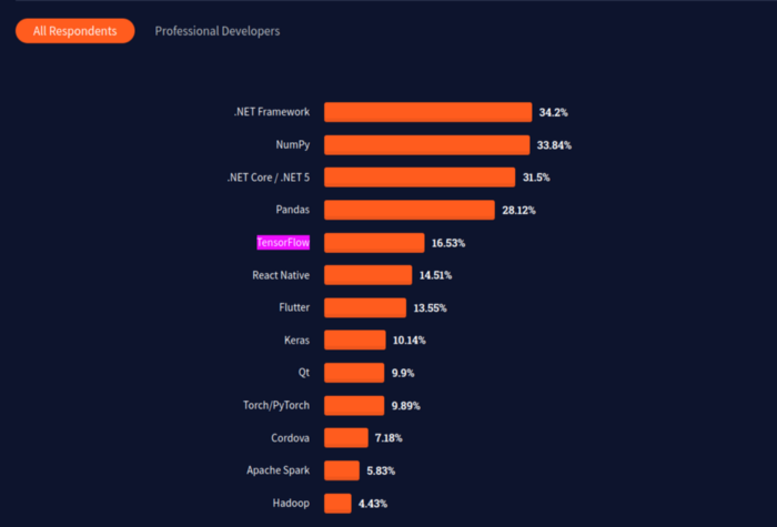 TensorFlow по-прежнему остается самой популярной библиотекой ИИ: