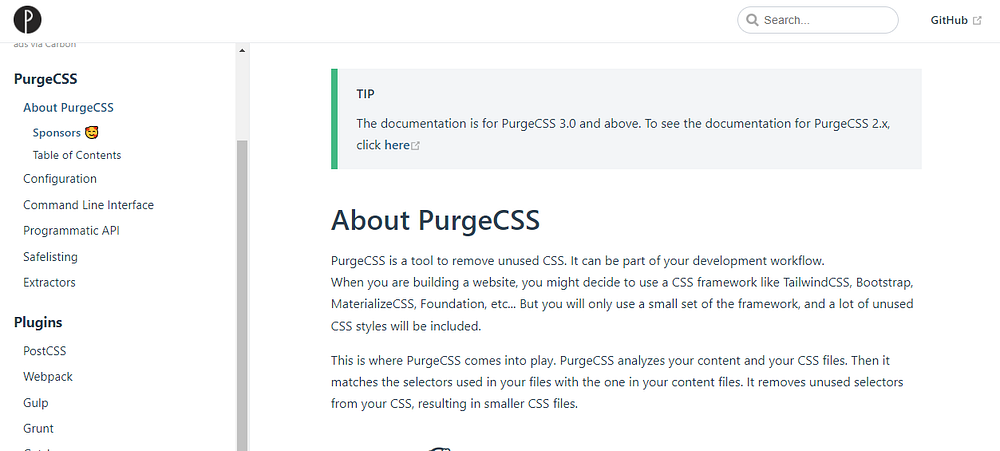 PurgeCSS — еще один полезный инструмент, который удаляет неиспользуемый код из CSS. Этот инструмент особенно полезен при использовании CSS-фреймворков, поскольку они часто поставляются с большим количеством кода, который может оказаться ненужным.