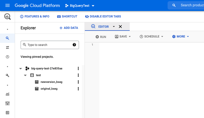 В консоли Google Cloud Console переходим к BigQuery. Вы должны увидеть один датасет с двумя таблицами.