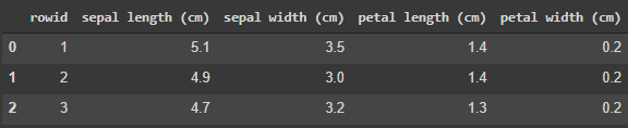 query = 'SELECT rowid, * FROM df_feature LIMIT 3'