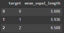 query = 'SELECT target, AVG("sepal length (cm)") AS mean_sepal_length