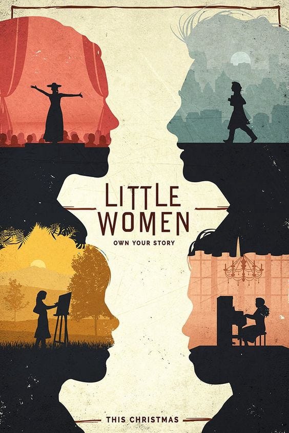 В данном плакате воссоздания фильма «Маленькие женщины» мы видим, что масштаб нарушает правила дизайна, но передает сюжет фильма.