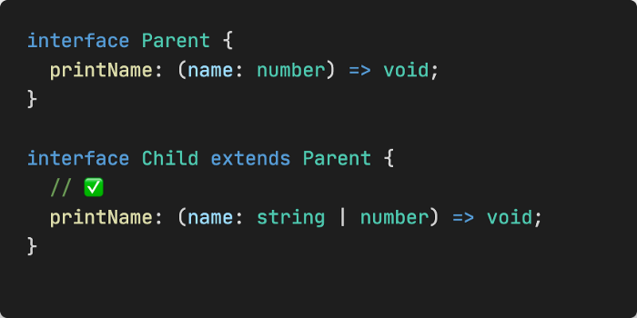 // ❌ Интерфейс 'Child' некорректно расширяет интерфейс 'Parent'.