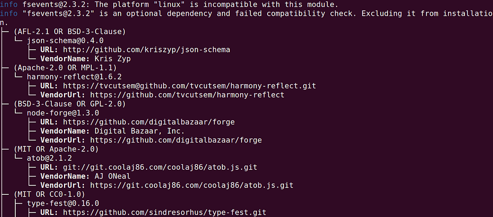Следующая команда выводит все лицензии пакетов с соответствующими URL. С ее помощью вы легко проверите любую библиотеку на наличие лицензии.
