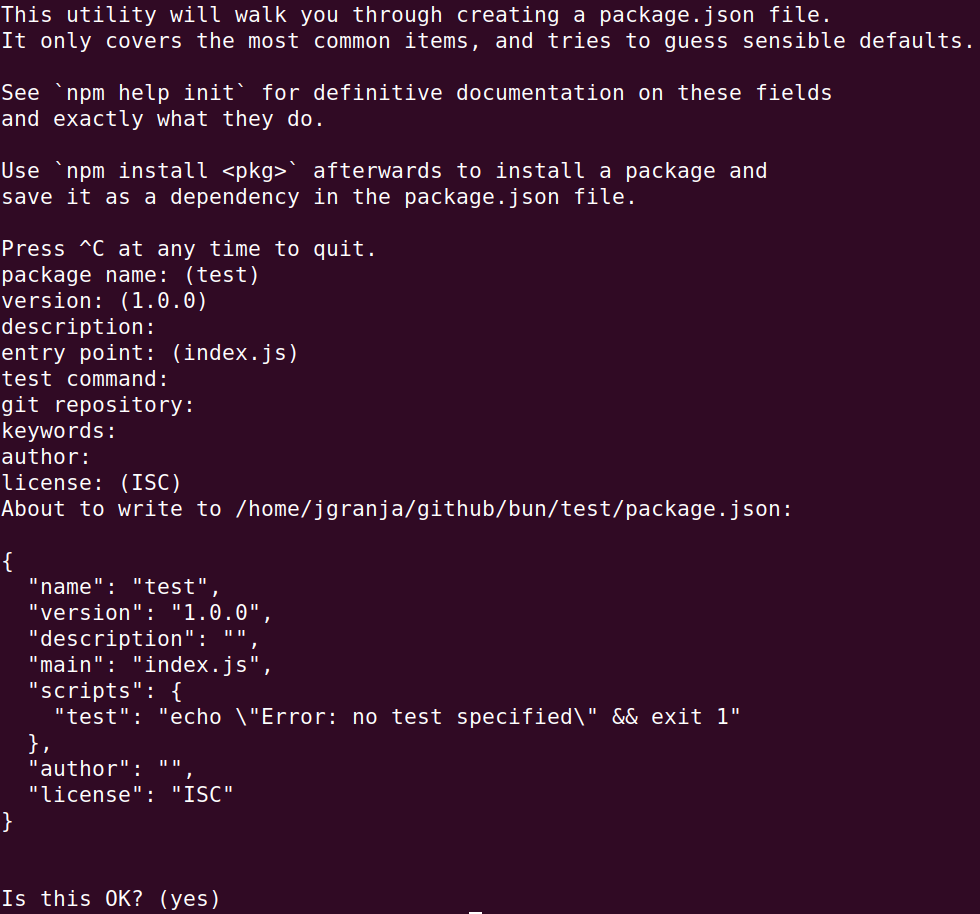 В качестве вывода команды мы получаем файл package.json со всей конфигурацией.