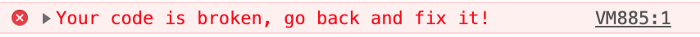 console.error('Your code is broken, go back and fix it!')