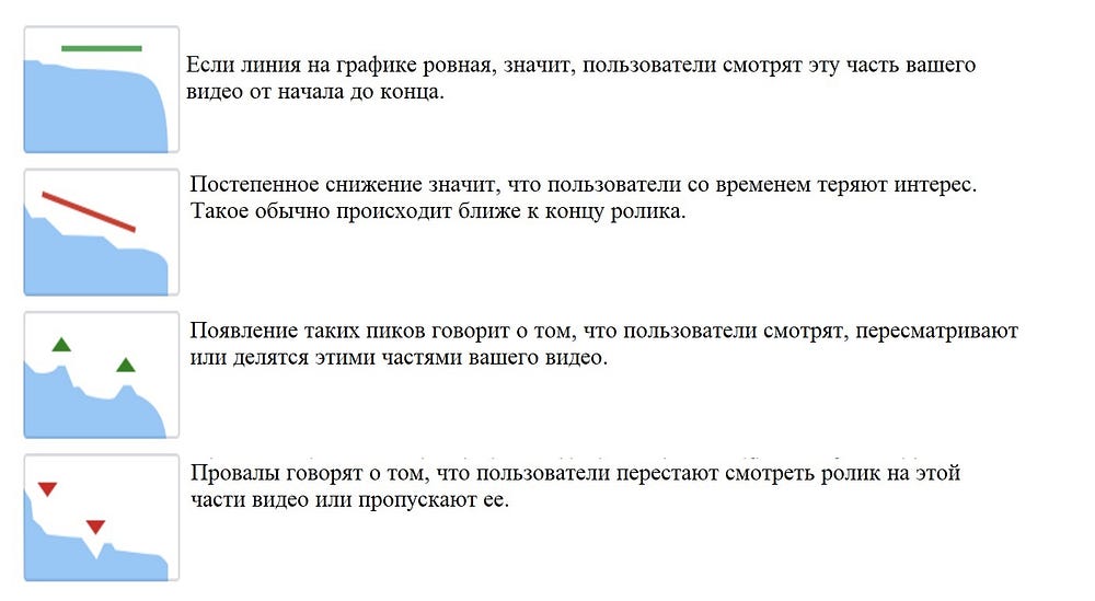 - Время просмотра. Количество времени, в течение которого пользователи просматривают видео.