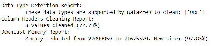 Из вышеуказанного отчета мы можем узнать о том, какие типы данных были обработаны, какие заголовки столбцов были очищены и насколько сократился объем памяти. Если вы считаете, что нужная степень очистки достигнута, можете использовать очищенный датафрейм для следующего шага. В противном случае используйте доступный API для дальнейшей очистки.