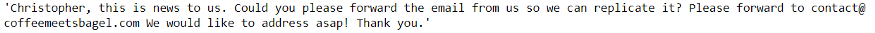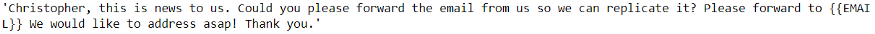 С помощью Scrubadub можно удалить различные персональные данные, например, имена и адреса электронной почты. Воспользуемся образцом данных, который содержит имя и адрес электронной почты: