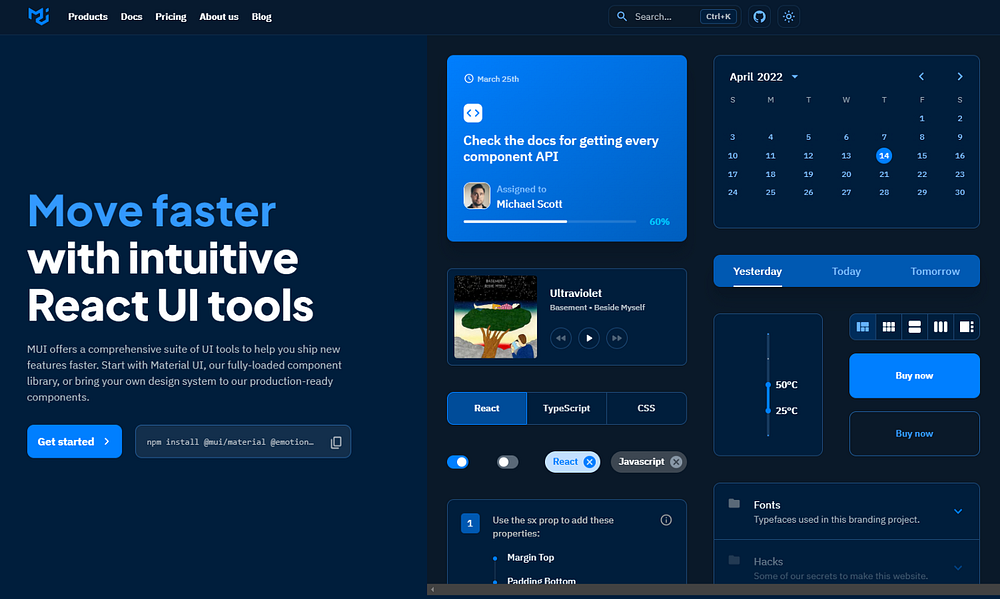 Material-UI — это библиотека, которая позволяет импортировать и использовать различные компоненты для создания пользовательского интерфейса в React-приложениях. Библиотека Material-UI экономит значительное количество времени разработчикам, избавляя их от необходимости писать все с нуля.