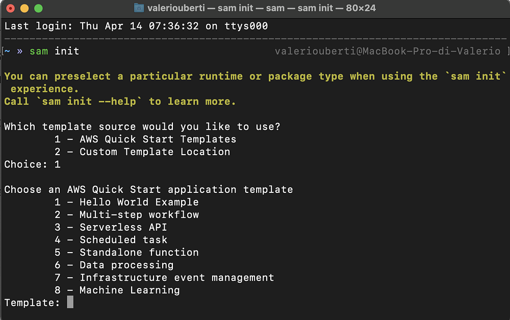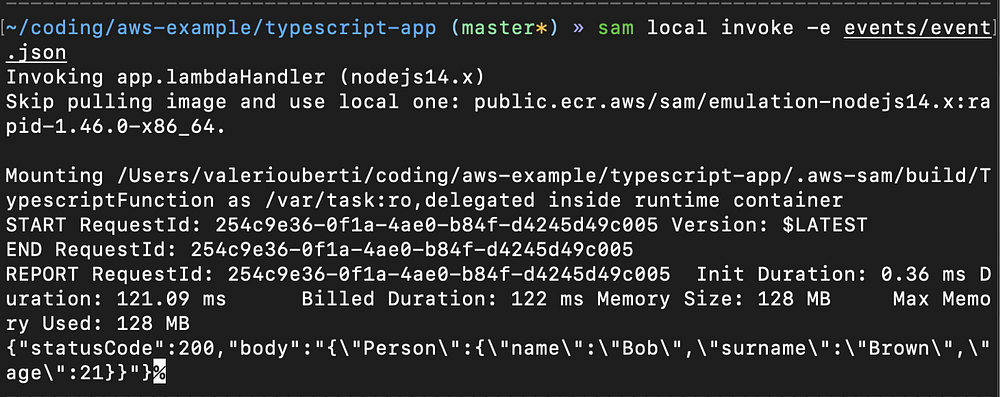 Если все работает должным образом, происходит компиляция функции Lambda. Теперь тестируем! Переходим в template.yml и подгоняем его под приложение. В данном случае он выглядит так: