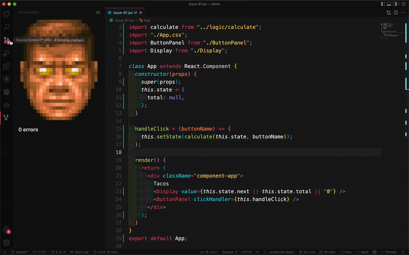 In Your Face — это расширение VS Code, показывающее вам рожицы из игры Doom, которые появляются при обнаружении ошибок в вашем коде (источник)