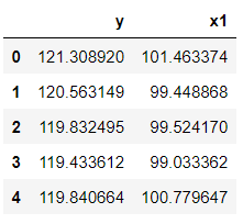 Как видно выше, получены зависимая переменная (y) и независимая переменная (x1). Обычно у нас имеется более одной независимой переменной, но будем придерживаться текущих данных. Запустим анализ с этими данными, указав период до интервенции и после.