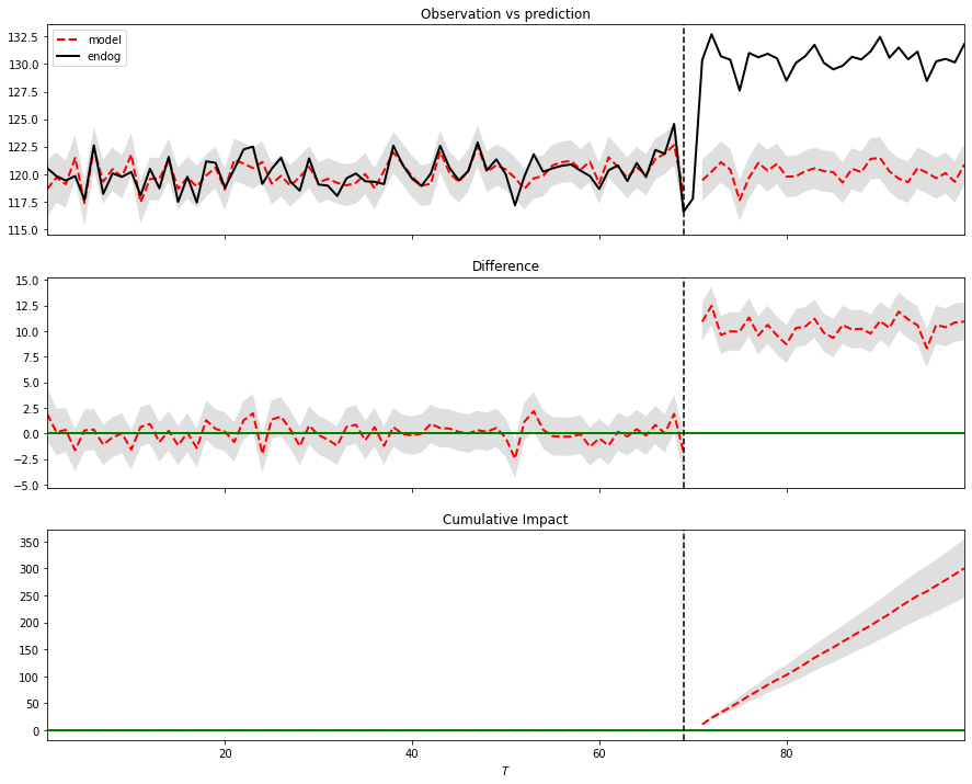 impact = CausalImpact(data, pre_period, post_period)