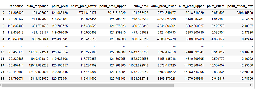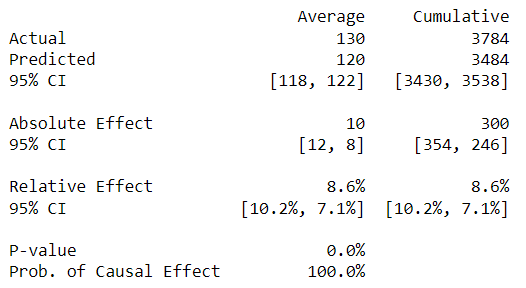 Сводка позволяет оценить, имела ли интервенция причинно-следственный эффект. Если потребуется более подробный отчет, можно использовать следующий код: