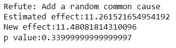 refute_results = model.refute_estimate(identified_estimand, estimate, method_name="random_common_cause")