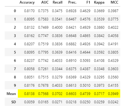 Мы можем легко выполнить настройку гиперпараметров с помощью функции tune_model()