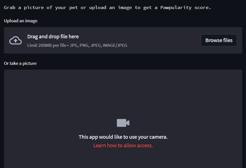 camera_input = st.camera_input("Or take a picture")