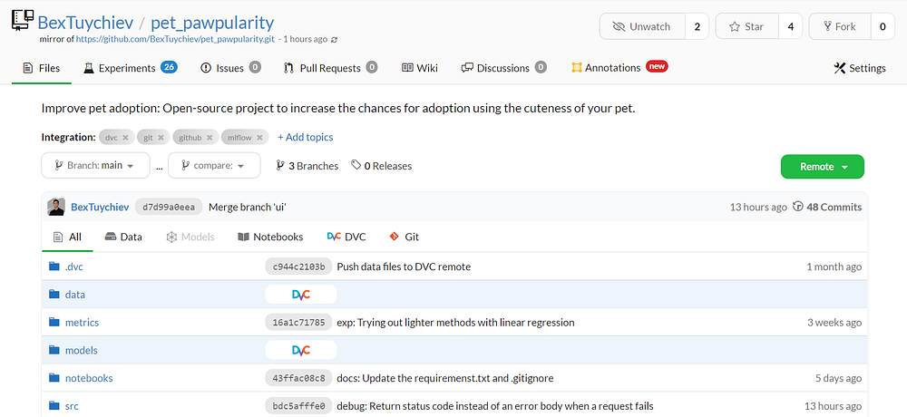 Для управления проектом мы будем использовать DagsHub — GitHub для профессионалов в области данных, позволяющий выполнять всестороннее машинное обучение.