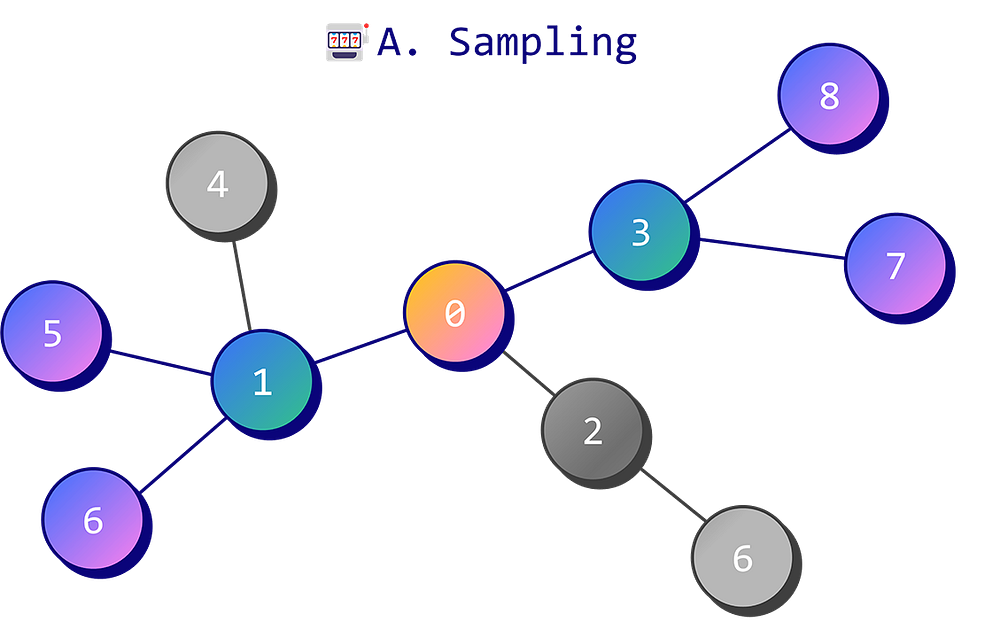 Техника выборки по соседям рассматривает только фиксированные числа случайных соседей. Вот как выглядит процесс.