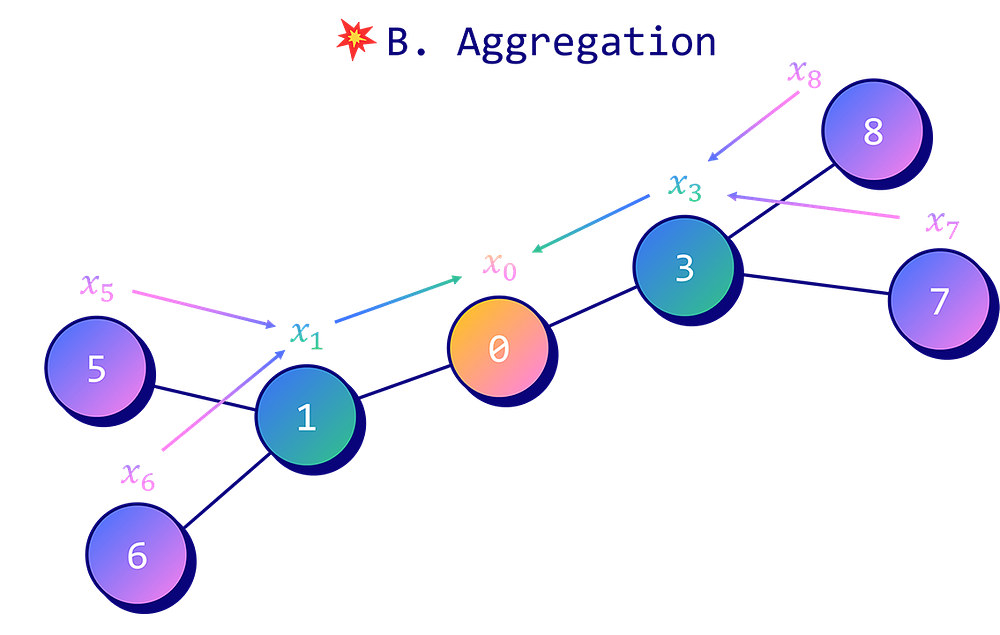 Процесс агрегации определяет, как сочетать векторы признаков для получения вложений узла. В оригинальной документации представлены три способа агрегирования признаков: