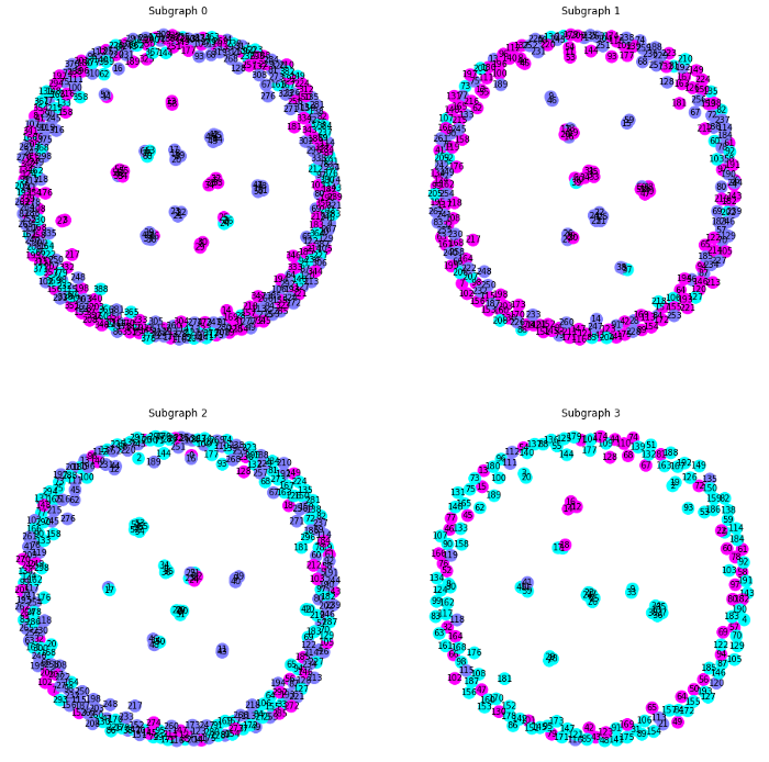 Subgraph 3: Data(x=[189, 500], edge_index=[2, 229], batch_size=12)