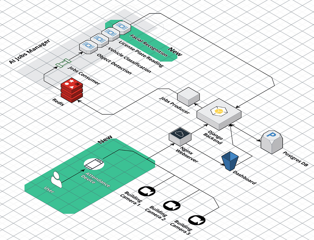 Этот сервер отвечал за работу некоторых сервисов искусственного интеллекта, разработанных для мониторинга программ (классификация транспортных средств, обнаружение объектов и т. д.). Наш план заключался в создании модуля “посещаемости” поверх уже работающей системы во фронтенде и бэкенде.