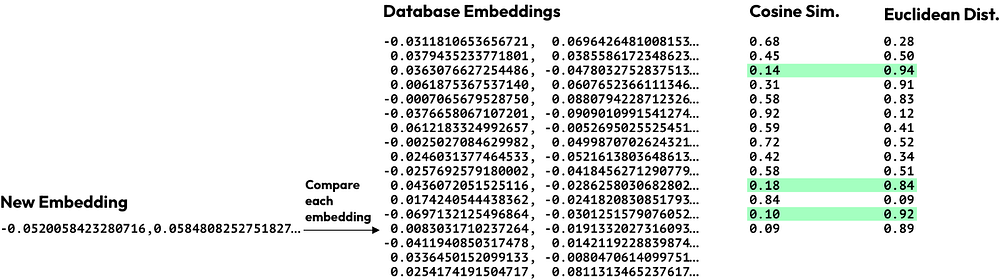 Для каждого события посещаемости мы создавали новое встраивание и сравнивали его с базой данных встраиваний, созданных тем же ИИ. Мы сравнивали встраивания, используя две функции: косинусный коэффициент и евклидово расстояние.