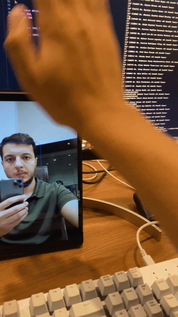 Основываясь на времени суток и рабочих сменах пользователя (которые вводились на дашборде), система автоматически определяла, идет ли речь о регистрации входа или выхода, и выдавала пользователю подтверждение успешной регистрации на входе или выходе. К счастью, созданная нами ИИ-модель работает молниеносно. На следующем рисунке видно, как быстро происходит одно распознавание.