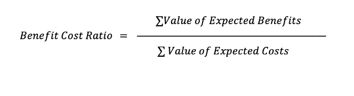 Соотношение затрат и выгод — это общая сумма ожидаемых выгод, деленная на общую сумму ожидаемых затрат.