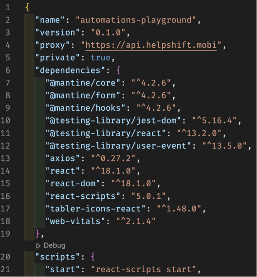В приведенном выше package.json видно, что объект “dependencies” сопоставляет имя пакета с диапазоном версий.