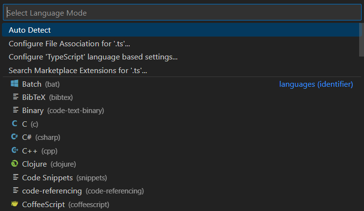 Однако иногда VSCode определяет язык неправильно, если расширение файла не поддерживается. Итак, если вам нужно изменить язык программирования, можно использовать это сочетание клавиш.