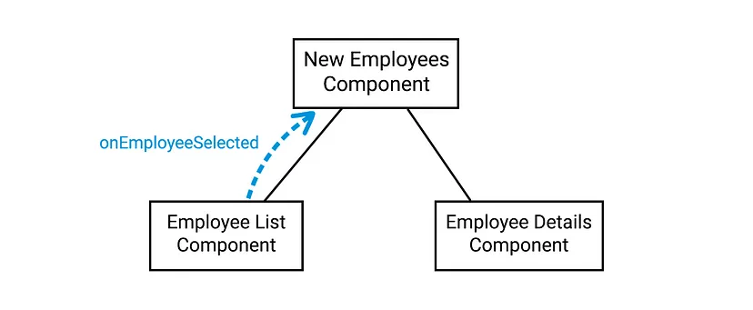 Обработчик действия onEmployeeClick находится в EmployeeListComponent, но стек навигации управляется его родительским компонентом NewEmployeesComponent. Чтобы справиться с этим, используем обратный вызов для уведомления родительского компонента о нажатии на элемент списка, что позволит ему вызвать метод навигации.