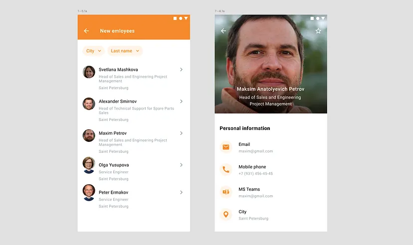 Например, ниже показано, как может выглядеть код для экрана списка сотрудников.