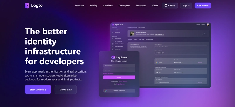 Он поддерживает различные методы аутентификации, включая вход через социальные сети и аутентификацию без пароля. Logto обеспечивает удобство использования при сохранении высоких стандартов безопасности.