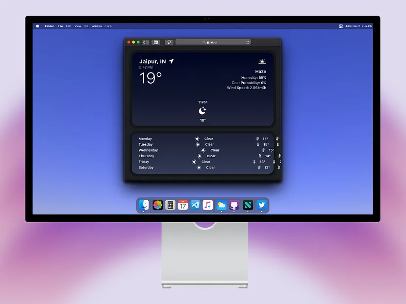 Инструмент имитирует обычные функции рабочего стола, такие как динамические обои, системные настройки, встроенное приложение погоды. При желании можно добавить свои функции. Все выглядит так же, как в настоящей macOS, и работает безотказно.